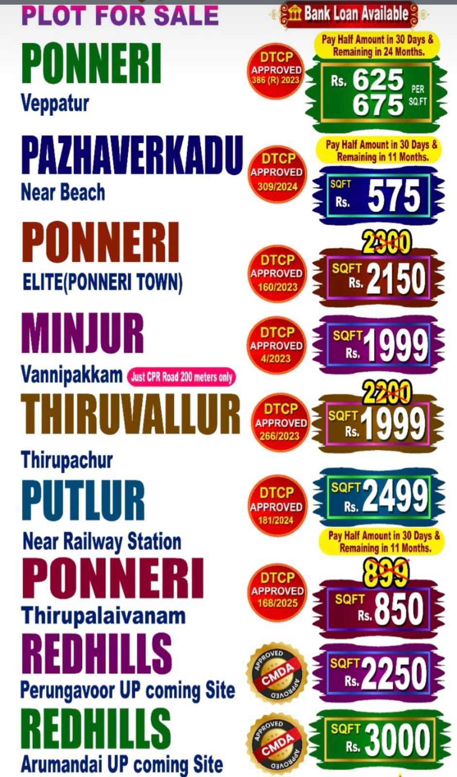 These properties are ideal for building independent homes, gated community villas, or for long-term real estate investment. North Chennai benefits from strong connectivity through major highways, railway networks, and proximity to industrial and port areas such as Ennore, boosting employment opportunities and demand for housing.